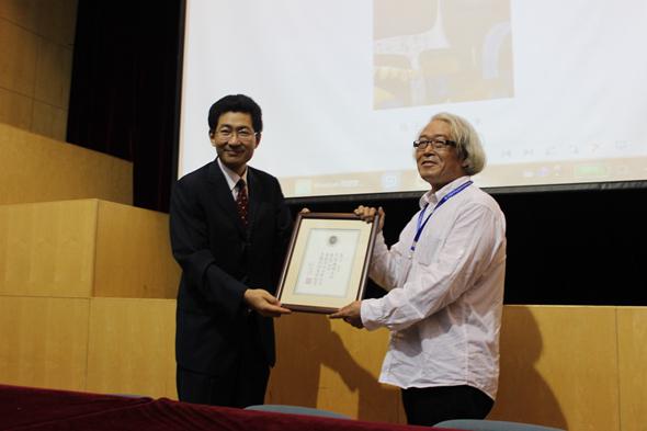 随后,开幕式进行作品捐赠,三位宗教界艺术家捐赠作品,并获得由北京大学图书馆党委书记萧群颁发的收藏证书。其中,基督徒岛子将作品《灵泉活水》捐赠给北京大学。