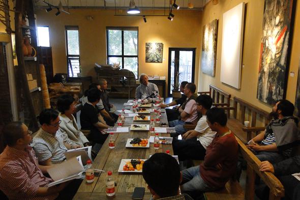 4点开始进行了展览的研讨会,近20余名来自各地的艺术家参加,围绕主题“大象之相”进行了讨论和交流,持续近2个小时。在研讨会上,大家探讨了抽象艺术的创作、传统文化的传承、艺术的表现形式等问题。