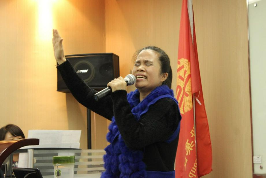 在医院的某一天,一群基督徒到了她的病床边,主动要给她唱歌,还面带微笑。她非常高兴,欣然接受了。“他们不同,这些人传福音的方式是用唱歌的。 我一辈子都不会忘记他们唱的赞美诗,‘耶稣爱你,耶稣救你,这一生最大的福分就是,耶稣永远爱你…… ’”覃姊妹说,“听到耶稣的爱,我的眼泪忍不住掉下来,他们要带我做决志祷告,我变得非常顺从,没有说什么,只是流泪跟着他们接受主耶稣成为我生命的救主。”