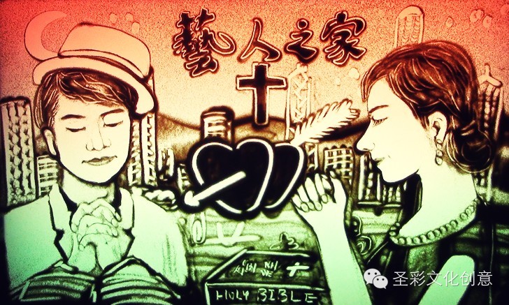 这两位基督徒之间有着的奇妙曲折爱情之旅吗?日前,一位主内艺术家刘圣彩弟兄专门创作了创意沙画《蓝男之恋》来讲述两人的爱情之旅,盼带领更多年轻人认识上帝,缔造荣耀的婚姻。