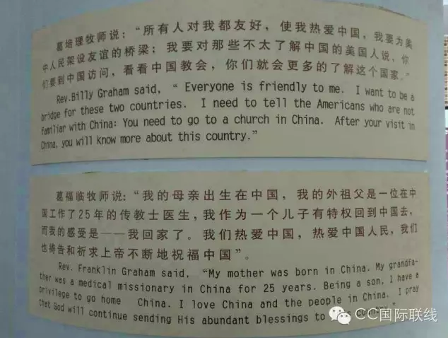 葛卫理此次行程中,还来到淮安市基督教堂陈列馆,参观并瞻仰钟爱华等先辈在中国淮安大地上的布道、宣教和帮扶的足迹。这里依旧在纪念着“淮安的女儿——路得”。陈列馆中,还悬挂着葛培理牧师与葛福临牧师的祝词。葛培理牧师说:“所有人对我都友好,使我热爱中国。”葛福临说:“我的母亲出生在中国,我的外祖父是一位在中国工作了25年的传教士一生,我作为一个儿子有特权回到中国去。而我的感受是——我回家了。我们热爱中国,热爱中国人民,我们也祷告和祈求上帝不断地祝福中国。”