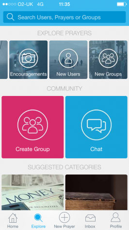 它的界面类似Twitter,你所在社区的其他人可以随时发送自己的祷告题目然后显示在你的界面上,并且界面还给出了“祷告”、“再祷告”和“评论”的三个按钮。用户们还可以添加标签、附加图片等,并且在祷告被应答后作出笔记。你还可以加入一些有专门祷告题目的群,比如为中东祷告等。