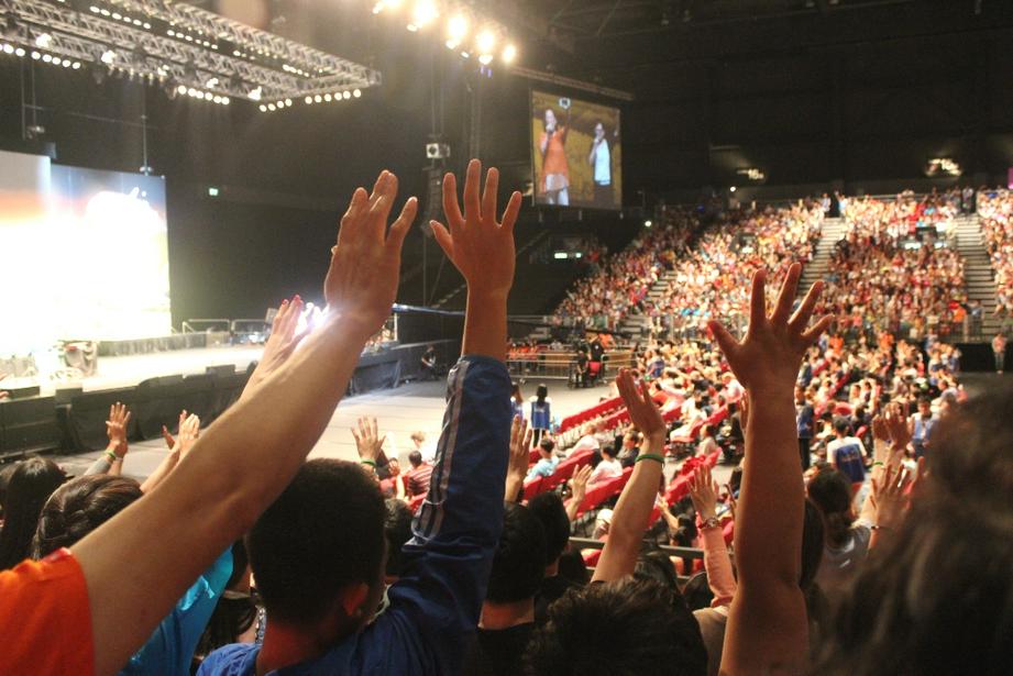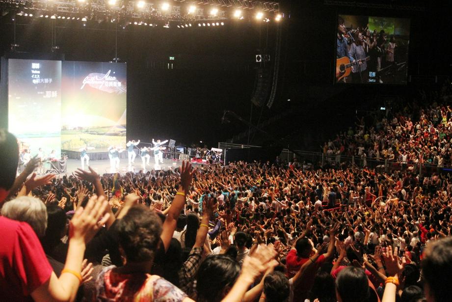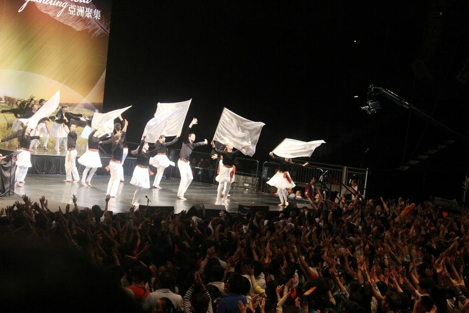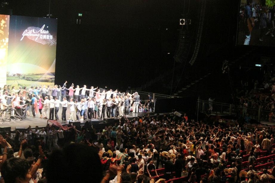 当越南家人们走上台时,台下上万人顿时响起热烈的掌声,欢迎新的肢体加入亚洲大家庭。其中带领团队的越南姐妹分享说,“两个月前,神把越南的家人带领在一起。我们从韩国中国得到很多的爱,所以我们要尊荣你们。”