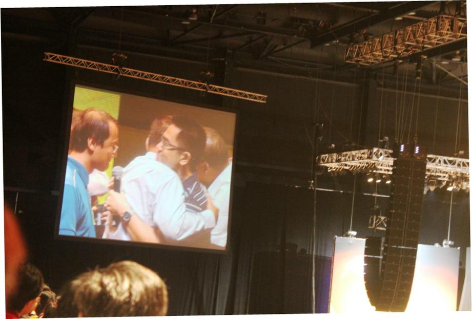 当越南家人表明他们愿意合一的心意后,中国代表也上台表示热情的欢迎和拥抱,“中国春节传统就是,一家人一定要团圆一起吃饭,所以春节时很多人唯一的目的就是要回家,拥抱我们的家人一起赴新年的宴席。”说完,中国代表和越南的代表们彼此拥抱哭泣亲吻,那拥抱的一幕持续了好久,感动了全场会众。相信大家等待了这一刻好久,天父也等待了好久,也许这就是回家的意义。