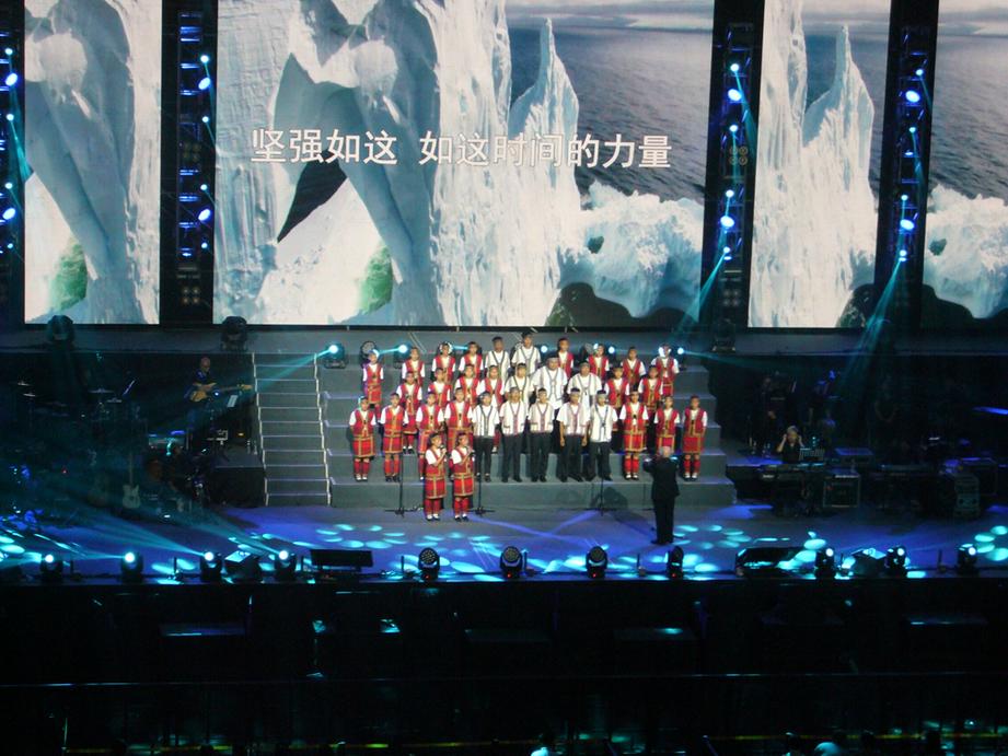 最后,全体表演嘉宾共同走到台前,合唱晚会主题歌《让爱启航》作为晚会的结束曲目。