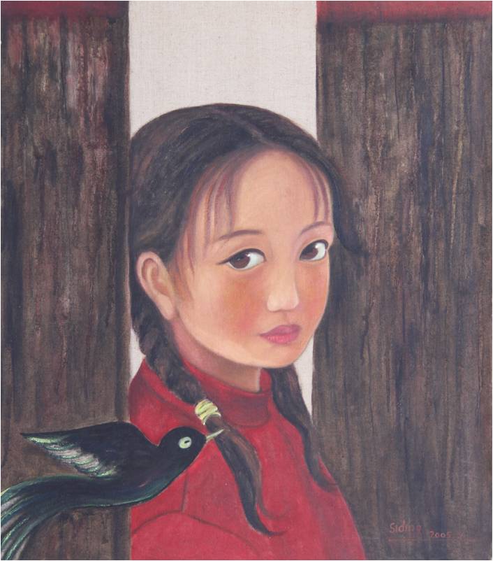 那个时候,王思丁的画作最著名的特点画许多少数民族女孩清纯而寻觅的眼神,而天空上总是有意无意飘着一朵淡淡的云,“云是属天的。那个时候我虽然没信主,但我的确对很多属灵的事物有隐在的渴望。今天再回头看,我内心的渴望已经在画面上呈现了。”