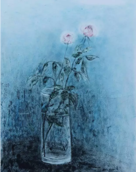 而这些花花草草的画作有一个共同特点是它们都装在一个玻璃器皿里面。“一个画家选的题材都不是随便的。看这些画里面的器皿都是晶莹剔透的,我希望我的心在上帝面前也是如此。”