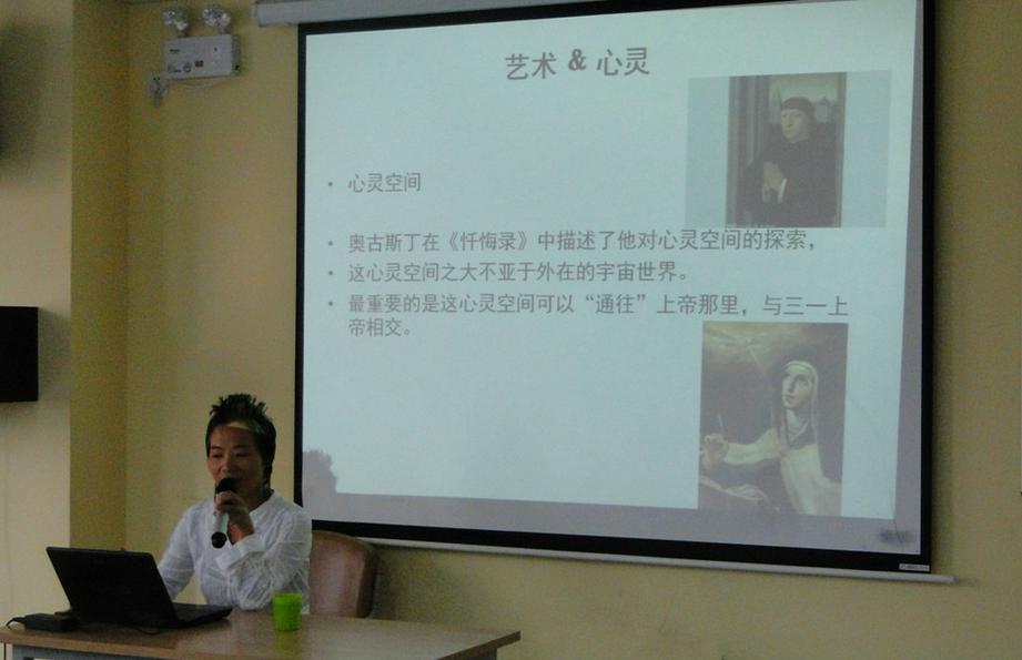 “我们每个人都有心灵空间,这个心灵空间不亚于外面的宇宙世界,这个心灵空间是可以通往上帝哪里。艺术家的作品产生于艺术家的心灵,承载着艺术家灵魂深处的生命体验…可以说,什么样的心灵空间,就产生什么样的艺术作品。”王思丁姊妹拿出不久前812天津大爆炸之后的废墟照片和一张美丽的花园对比,说:“我们的心灵空间可能是一片冰冷、没有生命的废墟状态,也可能是一片生机勃勃的上帝创造的大自然一般美好而富有生命。”