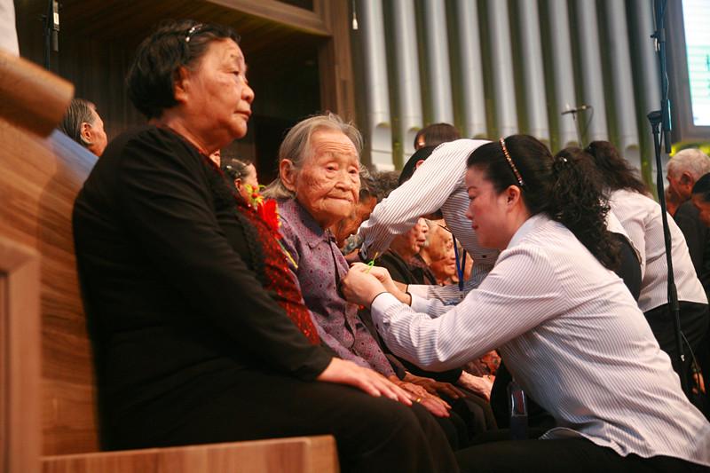 圣经说:“白发是荣耀的冠冕,在公义的道上必能得着。”(箴16:31)长辈老人们是教会的祝福,是神恩典的记号。10月20日,温州乐清地区柳市东片牧区2015年敬老感恩礼拜在柳市堂举行,约600位长辈弟兄姊妹参加了此次聚会,与此同时,此次的感恩礼拜还添加了一个特别的环节,为牧区十一位70岁以上的长老、执事、传道举行了隆重的荣休典礼。