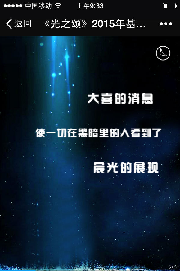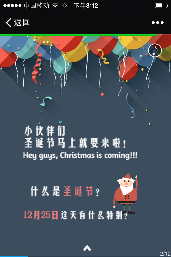 这些圣诞邀请函风格类似,标题或者直接是“某某教会圣诞敬拜邀请函”,“某月某日圣诞音乐会”或者是比较可爱的口吻“你有一封未读邀请函”,点开就响起优美的赞美诗,画面则是一页页精美的PPT,你可以逐一点击展开,每张配置以漂亮的图片和温馨活泼的邀请语。