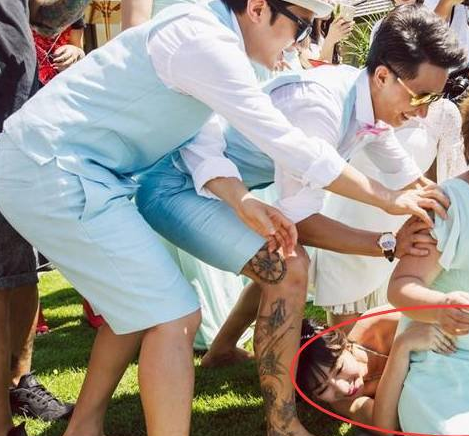 视频里,伴郎们抬起了伴娘柳岩,要把他扔进泳池。柳岩当天的衣服为薄纱抹胸礼服,如果最后被扔下水,走光是在所难免的。幸亏最后被另一位伴娘贾玲给拦了下来。