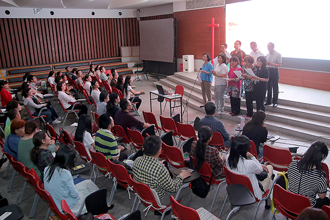 当晚的讲座于海淀堂副堂举行,约有400余人参加,主要是培新院的学员和教会的信徒,聚会以赞美和祷告开始,最后以主祷文结束。