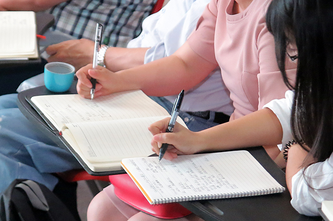 认真记笔记。
