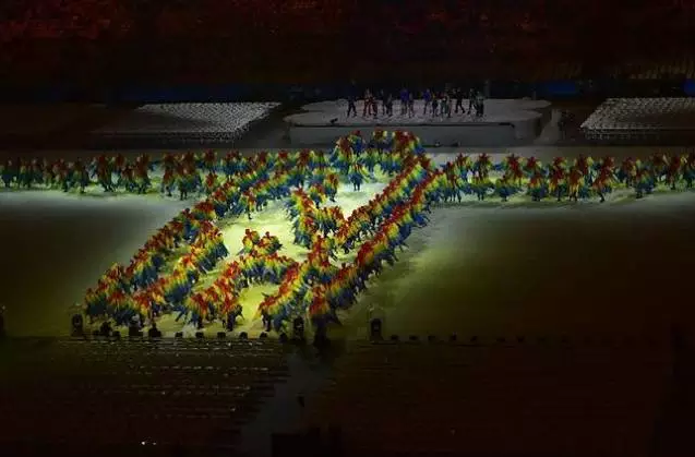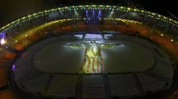 闭幕式的表演中其中最具深意之一的一个片段是现场的人海在体育场正中画出一个基督像,表达“基督就是人类的中心!”美丽而震撼。