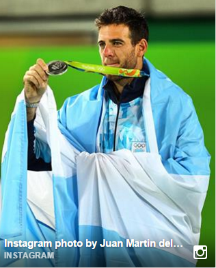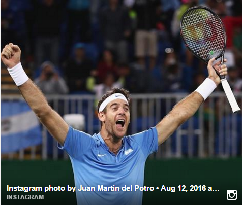 阿根廷的网球运动员胡安·马丁·德尔波特罗(Juan Martín del Potro)在网球男单的四分之一决赛获胜后双手合十公开祈祷。最终,他赢得这一项目的银牌。