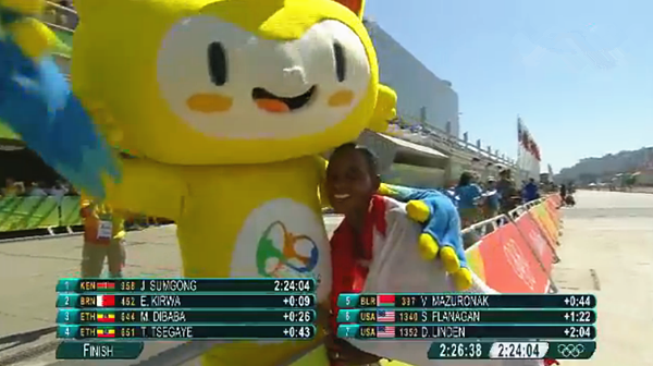 14日闭幕的马拉松比赛上,31岁的杰米玛·苏姆贡(Jemima Sumgong)以2小时24分04秒的成绩获得冠军。这位来自肯尼亚的女选手赛后接受采访时表示,“赛前我祈求上帝帮助,使我能跑出好成绩,很开心这祷告已蒙应允。”