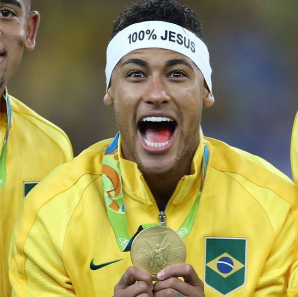 北京时间21日凌晨,里约奥运会男足决赛上演,巴西国奥在马拉卡纳球场经过点球大战,以6-5战胜德国国奥,如愿在家门口获得冠军。巴西国家队队长内马尔在领取金牌时专门在头上戴着“100% Jesus”,并且随后在社交媒体上分享说“一切荣誉荣耀全归于你”。
