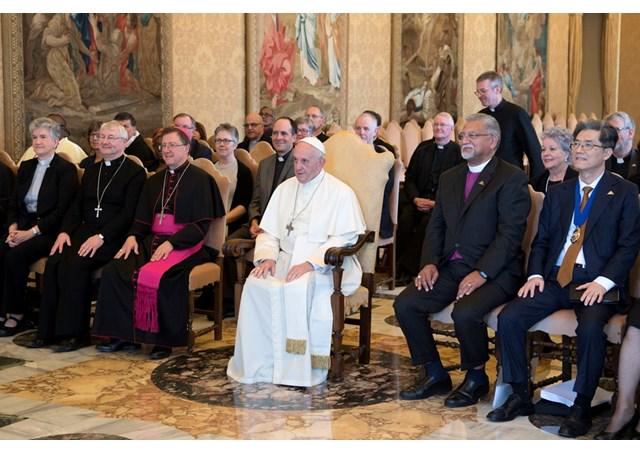 为纪念卫理公会与天主教会展开神学对话五十周年,教宗方济各与世界卫理公会代表团于10月19日做了会面。