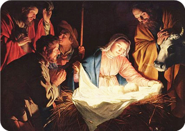 基督徒们对这个故事不会感到陌生,即便是主日学的孩子们也会听老师如此说:2000年前,神的儿子耶稣基督降生在了伯利恒的一个旅馆马槽里……我们不止一次看到或想象着,婴儿耶稣被她的母亲玛利亚用布包裹着温柔地放在马槽上,马槽里面铺满了柔软的草,这样小耶稣会睡得舒服一些。在他的旁边,围拥着他的母亲玛利亚、父亲约瑟,以及远道而来的三博士,温暖的灯光下三博士将不远千里带来的礼物献上。在小耶稣的头顶,还有天使环绕着。皎洁的月光从屋顶的漏洞中撒下来,浇灌在小耶稣的身上,如同父神赐下的绚丽金光,将他包裹其中……多么温馨,多么圣洁!