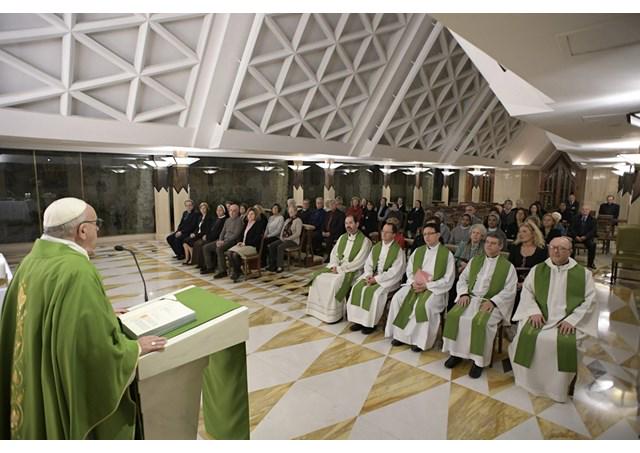 教宗默想了当天所读的《马可福音》经文:“众人很希奇他的教训,因为他教训他们,正像有权柄的人,不像文士。”(可2:22)他说,而牧师们如今“在祷告中与神亲近并且与人亲近”时,他们也拥有和当年耶稣那样的权柄。