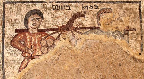 在以色列,一专家小组发现了几处马赛克绘画,其中一处描述了两个人用杠抬着一挂葡萄。据悉,他们是摩西派来侦察迦南地的两个探子,这可以在圣经《民数记》中找到记录。