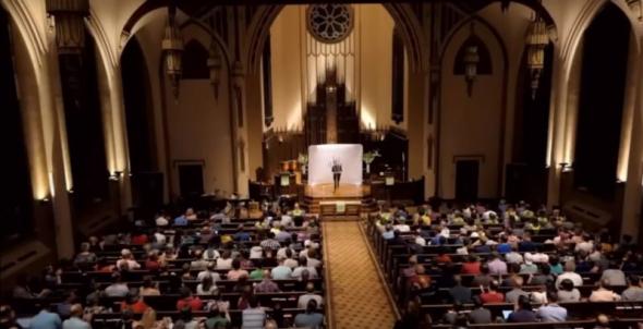 在上周六的演讲中,希尔的重点放在《约翰福音》8:1-11节。在这个章节中,一名女子因为犯奸淫而要被石头砸死,耶稣救了她,但也警告她“去罢,从此不要再犯罪了。”