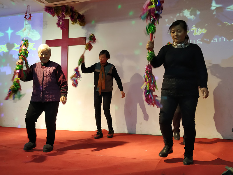 不大的主堂里坐满了前来参加的信徒,就连过道也不例外。据主任牧师介绍,在这里聚会的多以农村进城的打工群体为主,因工作的关系不能常常回家,藉着圣诞节这特殊的节期,弟兄姐妹们聚集在一起,欢歌跳舞,以热闹和喜庆的方式来纪念主的降世的同时,也以温馨的氛围来传递爱,使弟兄姐妹们感受到教会的温暖和爱。