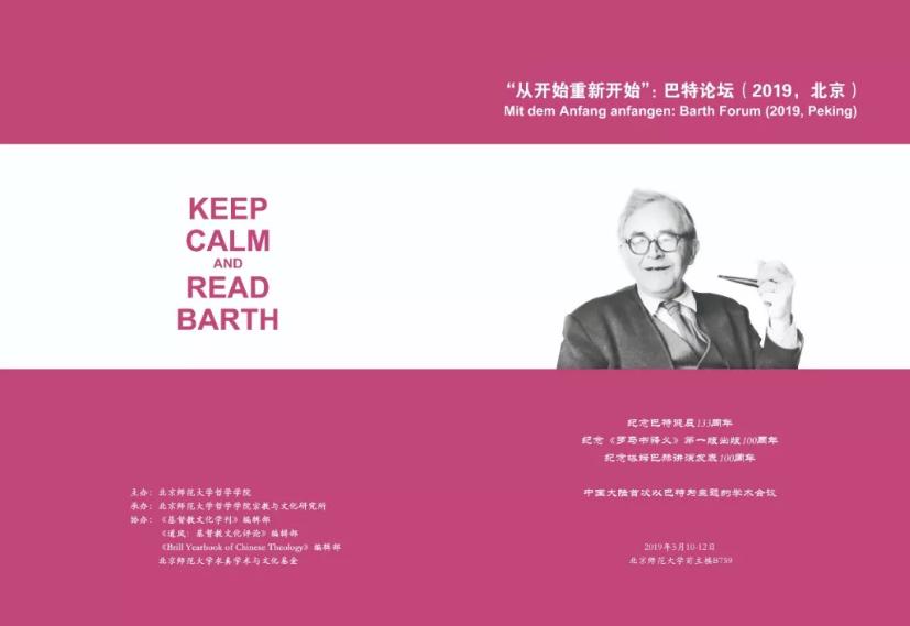 为纪念瑞士新教神学家卡尔·巴特(Karl Barth,1886—1968)诞辰133周年、《罗马书注释》第一版出版100周年、在瑞士宗教社会主义会议发表《塔姆巴赫》演讲一百周年,第一届“巴特论坛”定于2019年5月10—12日在京举行,这是中国大陆首次以巴特为主题的学术会议。