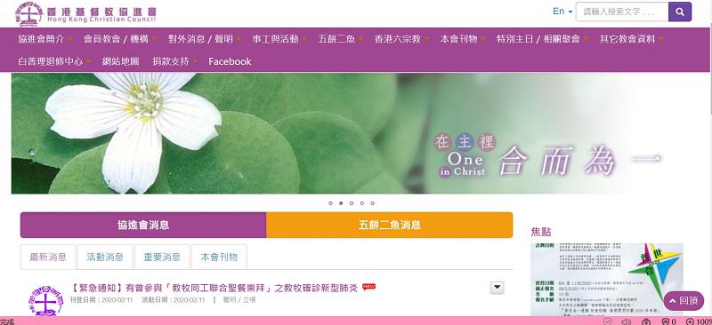 2月11日,香港基督教协进会发出紧急通知,一位曾参与“教牧同工联合圣餐崇拜”的教牧后确诊新型肺炎,提醒当天的出席者留意此事,如有不适马上求医。