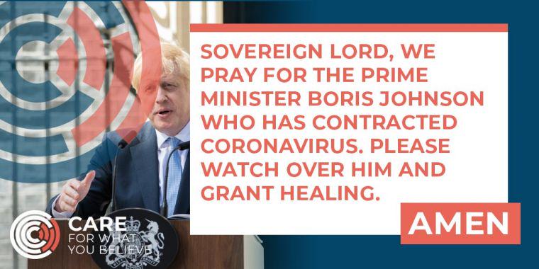 在鲍里斯·约翰逊的新冠状病毒检测结果为阳性后,基督教行为研究教育(CARE,Christian Action Research Education)分享了对他的祷告词,请求上帝治愈他。