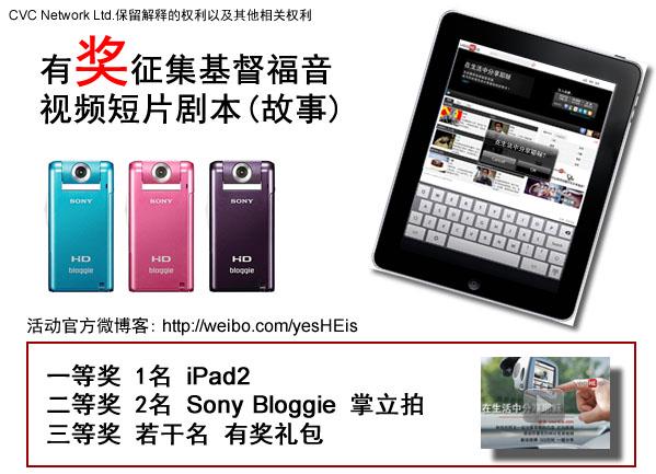 如果你有一台iPhone5,你第一个想做的是什么呢?打电话给爱人?发布消息到微博?拍下自己难以形容的兴奋?如果你有一台iPad2,你第一个想做的又是什么呢?不如,先来参加“福音视频短片剧本创作活动”吧!一等奖就是一台iPad2!