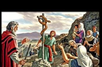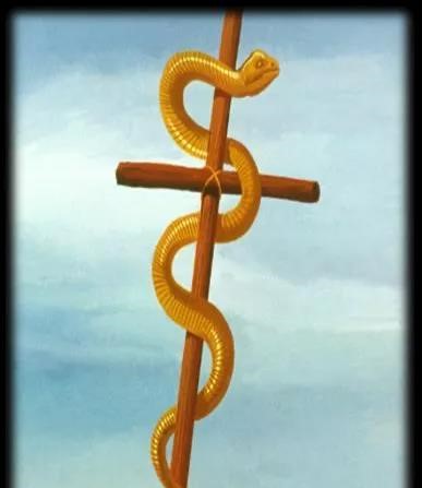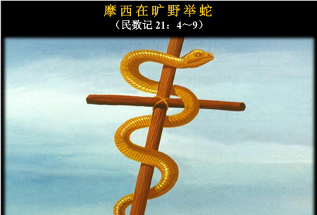 神吩咐摩西制造了一条铜蛇,挂在杆子上,凡被蛇咬的,只要一望铜蛇就马上得着医治,存活下来。