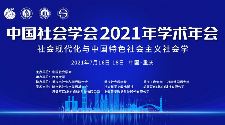 中国社会学会2021年学术年会以“社会现代化与中国特色社会主义社会学”为主题,由西南大学承办,重庆市社会科学界联合会、重庆社会科学院、重庆工商大学、四川外国语大学联合协办。