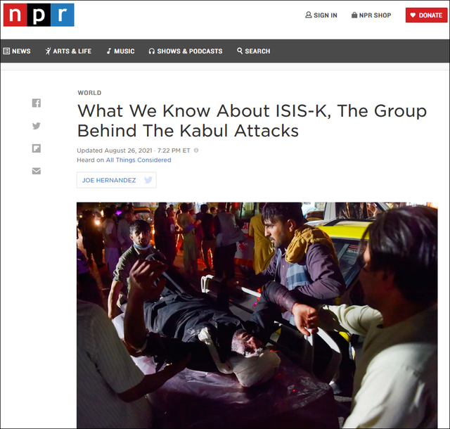 与此同时,ISIS在阿富汗一直遭到美军和阿富汗安全部队的打击,实力有所削弱。2017年,美国估计当时“伊斯兰国呼罗珊分支”在阿富汗的武装分子人数已从2015年的2500人左右降至不到1000人。2020年7月的一份联合国报告称,尽管ISIS在阿富汗分支不断遭打击而实力下降,但仍有能力在阿境内各地发动攻击。根据联合国报告,该组织现有成员约500至1200人。这个“伊斯兰国呼罗珊分支”(IS-K)近几年来一直在阿富汗和巴基斯坦进行所谓的“圣战”, 对所在地的平民和政府目标进行了一系列引人注目的暴恐袭击,目前被美国等国认定为外国恐怖组织(FTO)。