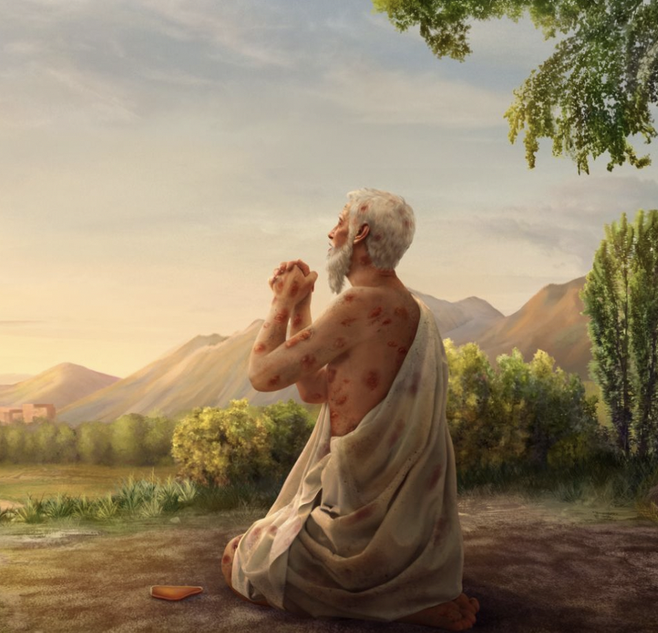 约伯陷入了众叛亲离的境地中,还得了一场非常痛苦的皮肤病,甚至拿瓦片来刮自己的身体。连她的妻子都说,你赶快咒诅上帝,自杀算了。结果,约伯说:我从上帝的手里受福,也从他手里被收走祝福,他还是没有抱怨上帝。