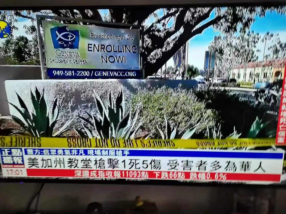 洛杉矶时报消息,15号周日洛杉矶奥兰治县拉古纳伍德村的一所中国台湾移民教会发生了枪击事件,造成了1死5伤。警方表示教堂会众展现了非凡的勇气,制服了罪犯,挽救了更多的生命。