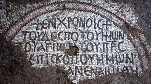 这则铭文是希腊马赛克铭文,上写着“基督的仆人君士坦丁”,这应该是指教堂的捐赠者,这是符合拜占庭奉献马赛克的传统的。考古学家解释说,这并不是指此人是第一个信奉基督教的罗马帝国的皇帝君士坦丁。