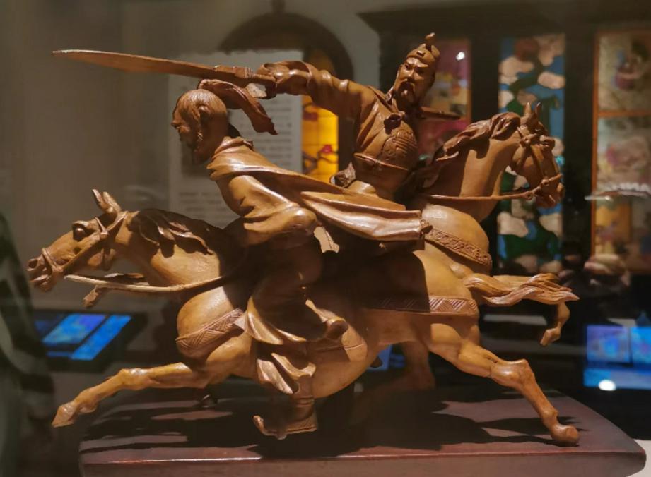 牌楼的雕刻主题为三国故事。与关羽相关的故事为主,放在正面,反面主要是诸葛亮等人物故事。此外,牌楼柱子底部的10个抱鼓石上有42只大小狮子,在修复和补雕后,也依然保持着脸型扁平、鼻子短而肉鼓鼓的形态,憨态十足。