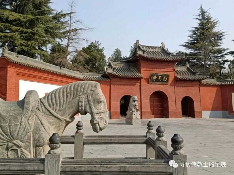 “白马”的传闻提到一座较古老的庙和一栋有木制塔楼的房子。人们说,庙建在了中国,在11世纪被大火烧毁之前,有多个世纪的绘画和雕塑装饰着。后来以砖石架构重建了。此外,这个第一座塔楼的建造可追溯到印度传教士到来的时期。与之关联的建筑物用来接待他们,同时有翻译,他们随身携带42首经文。