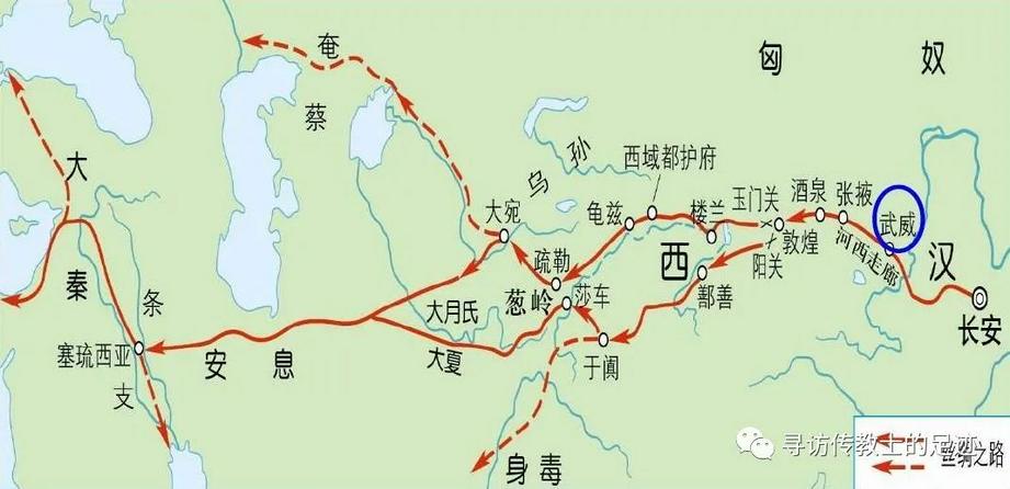 很显然的是,正如传闻所表明,这些同僚是从印度通过内陆丝绸之路到达的,当时丝绸之路得以重新开放,因为丝绸之路地区恢复了和平。但是在汉朝西部边疆地区在汉明帝当朝后期出兵镇压后才重复安宁。此后,很久以后,在丝绸之路沿线的西域诸国战争不断,后在中国和其他帝国之间达成和平协议后,即与帕提亚帝国平分诸国直至大秦边界的控制权,诸国被当朝控制。帕提亚帝国在两个世纪内控制着帕提亚帝国和中国之间数千公里地区。