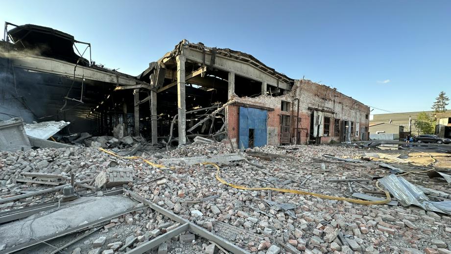 5月13日周六晚间,乌克兰西部城市特尔诺皮尔遭遇俄罗斯空袭,一枚导弹击中基督教组织为该市数百户家庭提供服务的大型仓库。