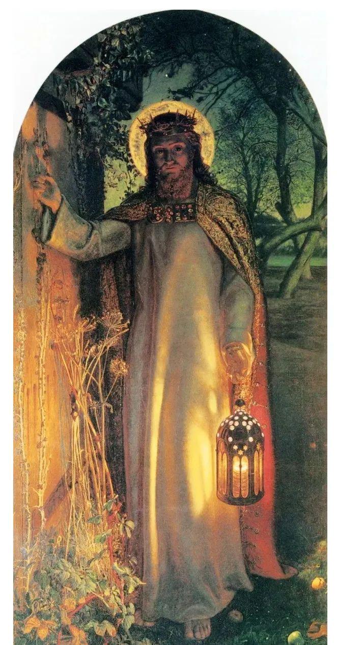 《世界之光》是亨特的代表作,被英国牛津凯布尔学院收藏。在作品中善师基督手持灯笼,现身在暮色的星光中,他在轻轻敲响一扇关闭的门,门前杂草丛生。他手上的灯是整个画面唯一的光源,当基督走进一个人的心灵的时候,他给予人带来心灵的光明,这是画面的主要意思。