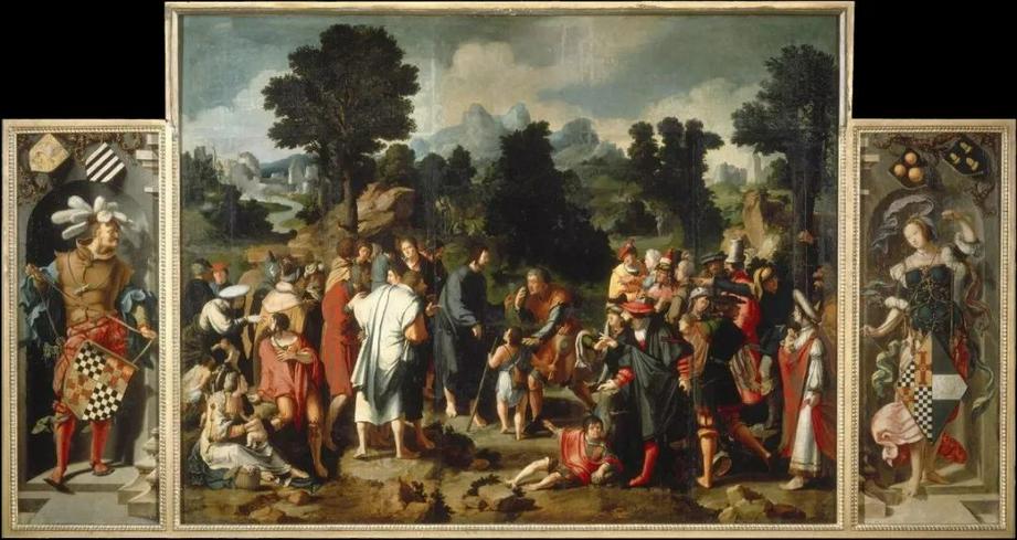 卢卡斯·范·莱顿于1531年创作的《治好耶里哥的盲者》,为木板油画(中心板)现为俄罗斯圣彼得堡埃尔米塔日博物馆收藏。这个木板油画是三联画的一部分。在其两侧是持着盾牌的人,穿着上有专有的盾徽,他们是莱顿杰出的公民雅各布·范·蒙福尔特·弗洛里兹和他的妻子德克珍·德克·博伦斯。16世纪荷兰画家传记作家卡雷尔·范·曼德认为这幅画是卢卡斯·范·莱顿最好的作品。