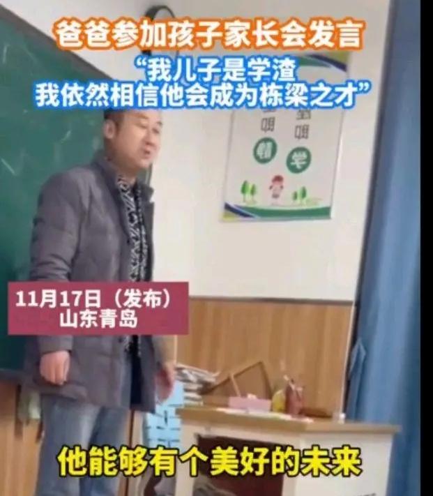 “我的儿子是学渣,但是我依然相信,他完全有可能成为国之栋梁。”说出这句话的,是山东青岛的一位父亲。当时,这位父亲参加了学校组织的一场家长会,这是他在家长会当中的发言。