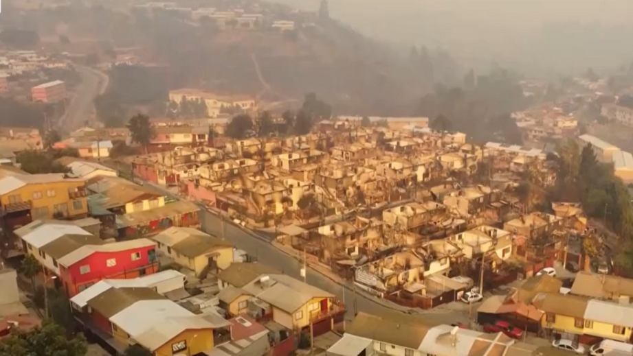 肆虐智利的特大森林火灾正从不同方向推向人口密集地区,比尼亚德尔马、瓦尔帕莱索、基尔普埃、阿莱曼纳镇和利马切等城市都遗留火灾破坏痕迹。这些受损城市位于瓦尔帕莱索大区,距离智利首都圣地亚哥海岸线130公里。