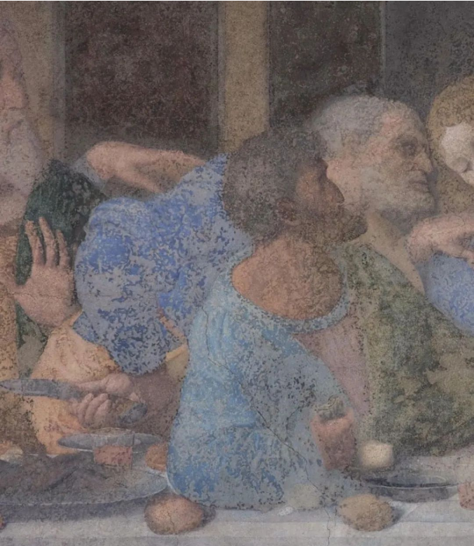 达芬奇历时四年终于完成了这幅《最后的晚餐》的不朽杰作。但是画作还是暴露出达·芬奇的短板,就是速度不行。他作画的速度驾驭不了蛋彩画,于是就用油来调色,直接画在墙上。几十年后,画面就变得模糊,大面积剥落了。但是在出问题之前,这幅画还是非常惊艳的。1513年,法国国王弗朗索瓦一世攻陷米兰,对《最后的晚餐》 赞不绝口,张罗着要把整面墙搬回法国。但是当时法国的工程师想不出办法,这才作罢。但这却成为后来法国国王把达·芬奇请到法国的前奏。