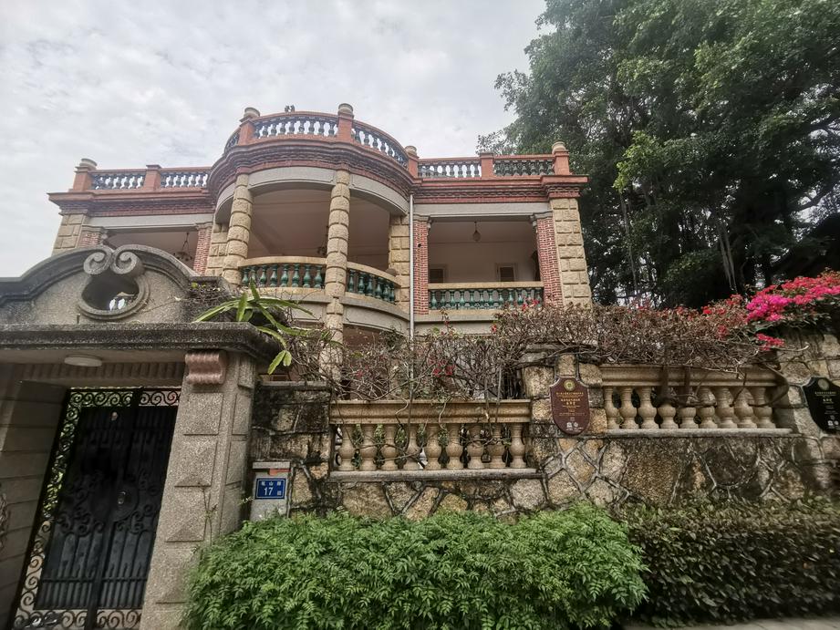 春草堂前,几乎每天都有来来往往的旅游打卡主播。他们介绍完春草堂后,许多直播主播的相机会纷纷左移,镜头对准的下一个目标就是鼓浪屿岛上唯一带观景电梯的别墅建筑。这正是为向爷爷许春草致敬而由许春草的孙子许多康设计建造在“春草堂”旁边的一栋民宿,名为“春草芬芳”。祖孙两代人的作品相互辉映,有种时代交错又一脉相承的感觉。