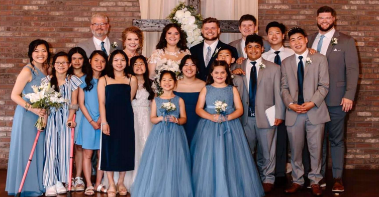 我和我丈夫马特已经结婚 29 年了。他是一位非常好的丈夫。我们有十七个孩子,最小的 10 岁,最大的 28 岁。我们生了三个孩子,领养了十四个,十一个来自中国,三个来自哥伦比亚。
