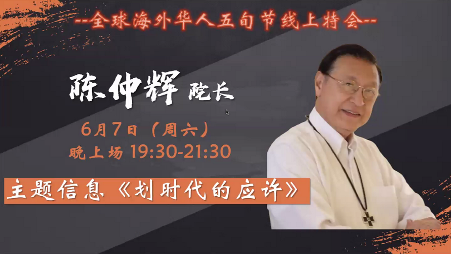 2025年6月6日至9日,在五旬节期间,2025年全球海外华人五旬节“领受圣灵恩膏“线上特会举行。6月7日晚,陈仲辉牧师以“划时代的应许”为主题分享,再次呼吁华人教会要领受圣灵的恩膏,并从七个方面介绍圣灵。