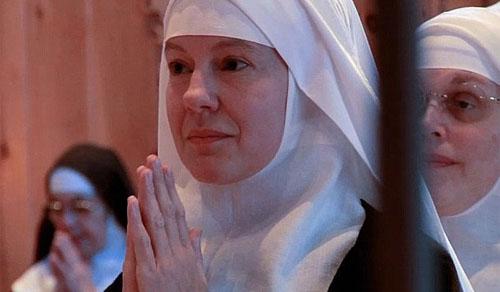 劳拉现年44岁,进入美国康涅狄格州山上的修道院后一直被称为约翰·玛丽修女。在纪录片中,她头上裹着修女头巾,脸上不施一点粉黛,表情安静祥和,与另外36名修女一起在祈祷。
